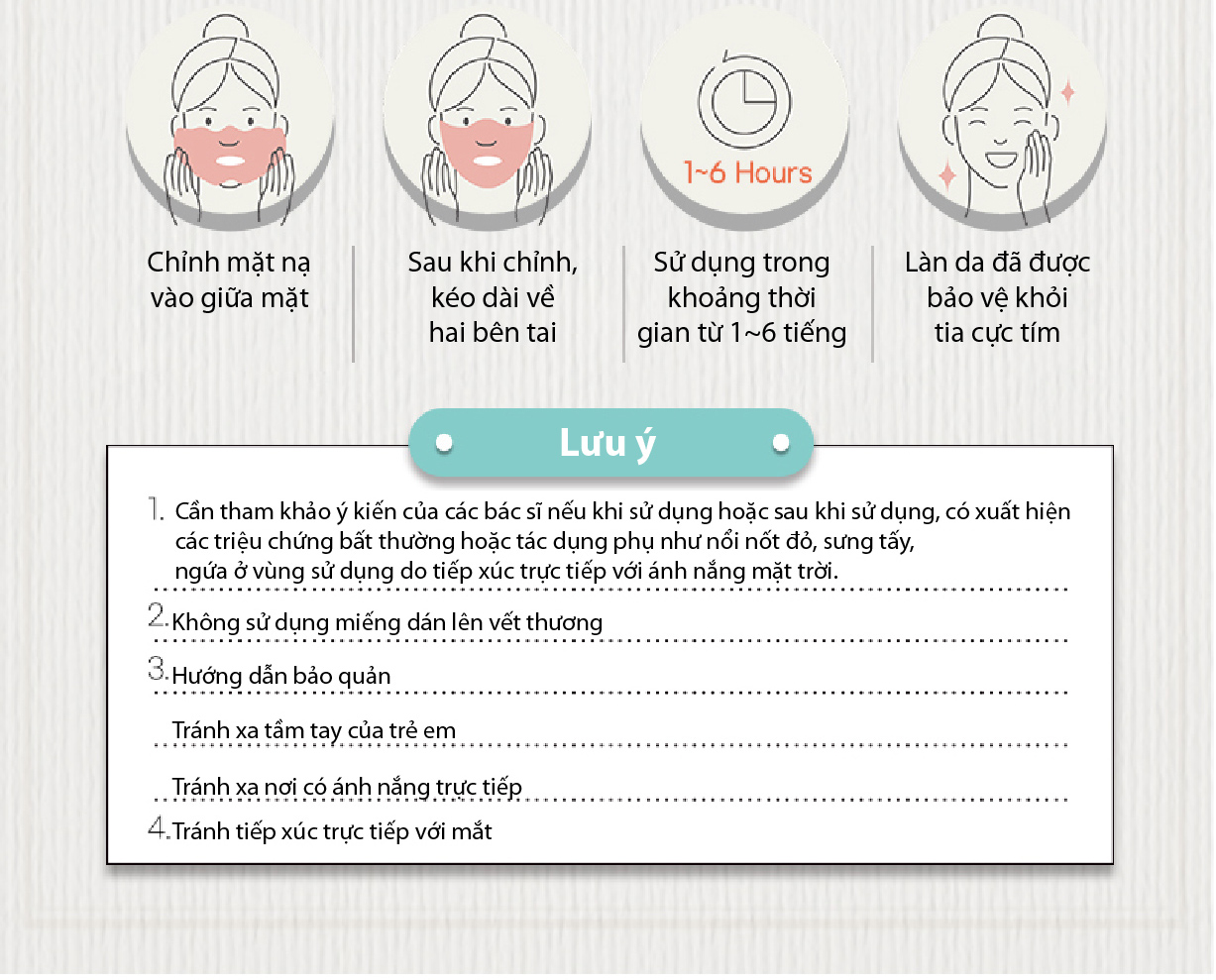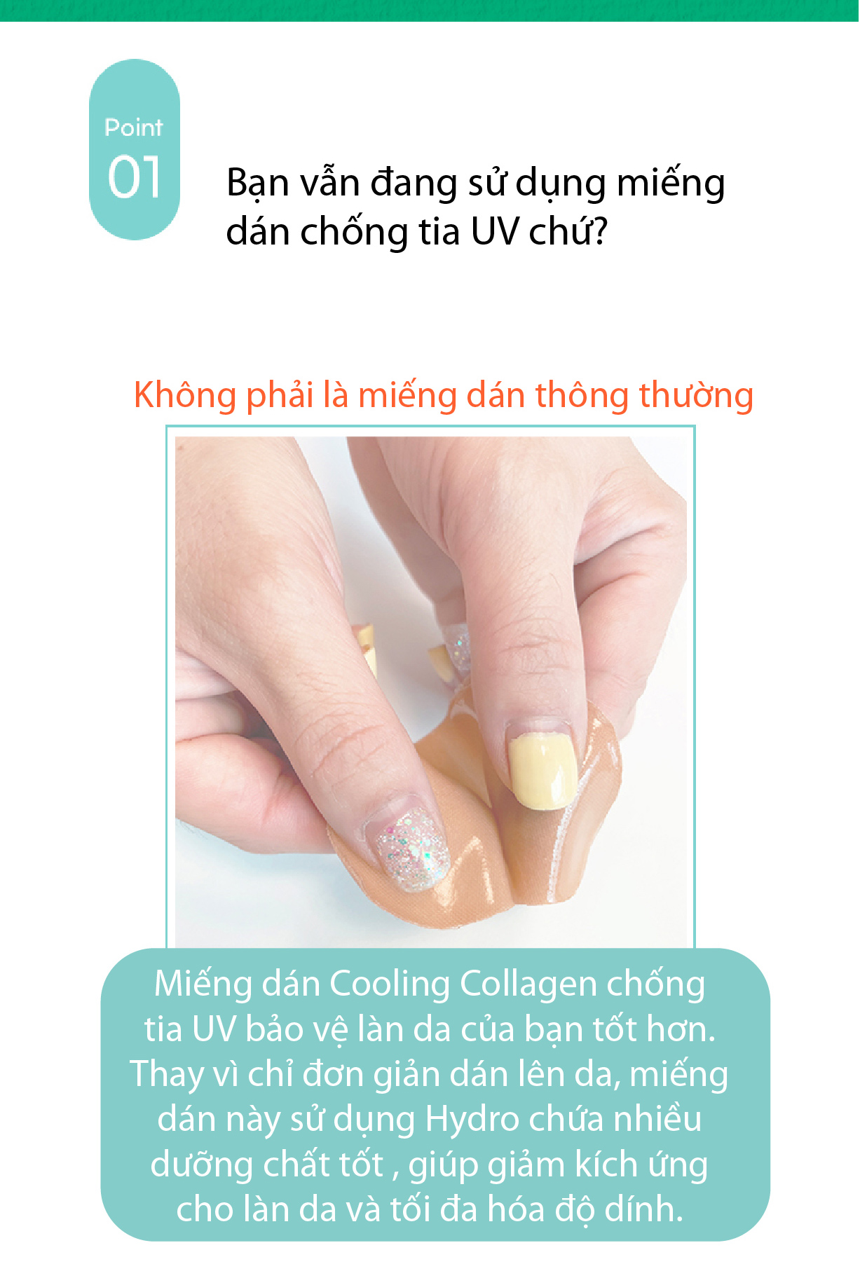 ĐẶC TÍNH SẢN PHẨM MIẾNG DÁN COLLAGEN CHỐNG TIA UV CHỐNG NẮNG
