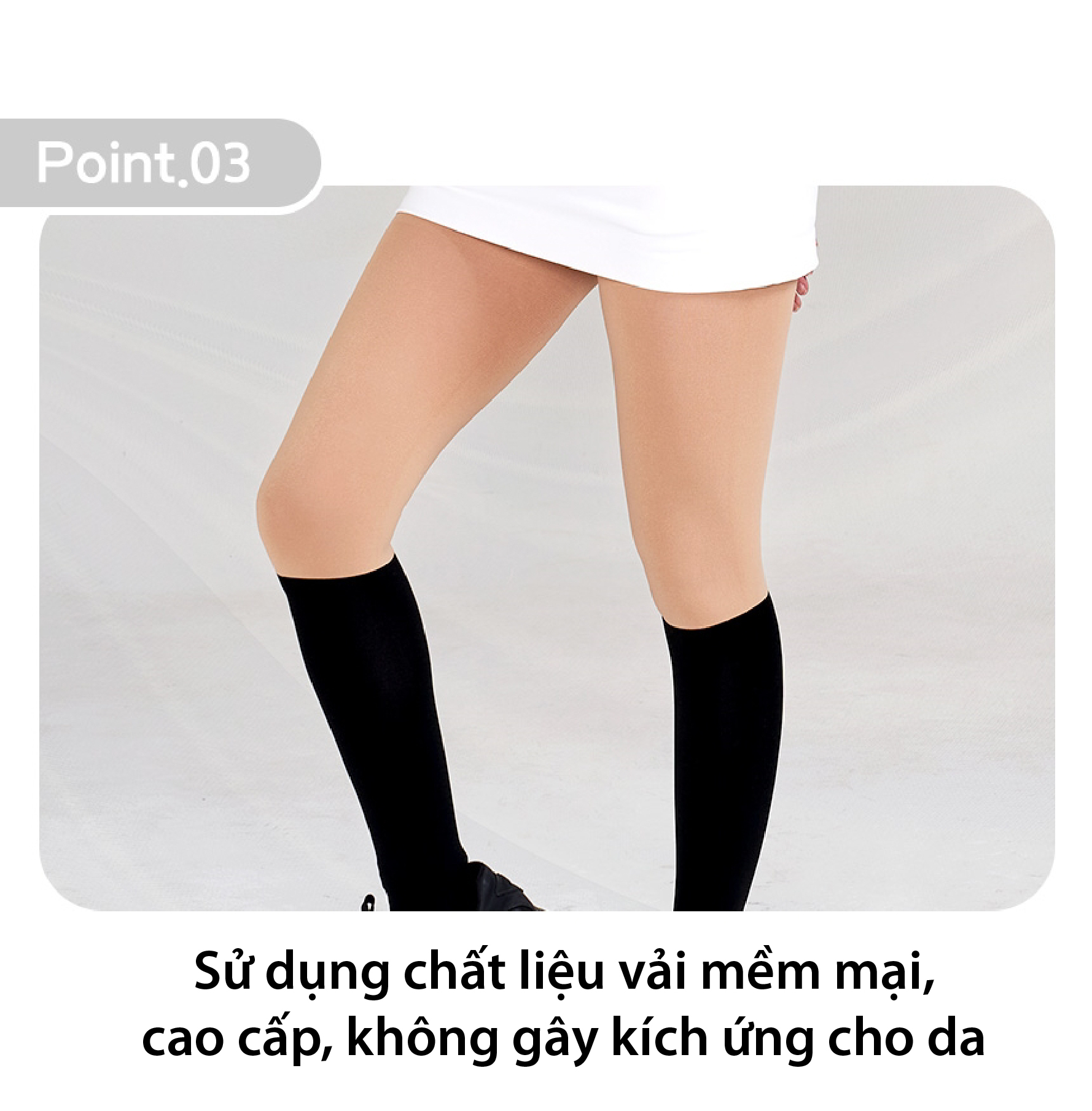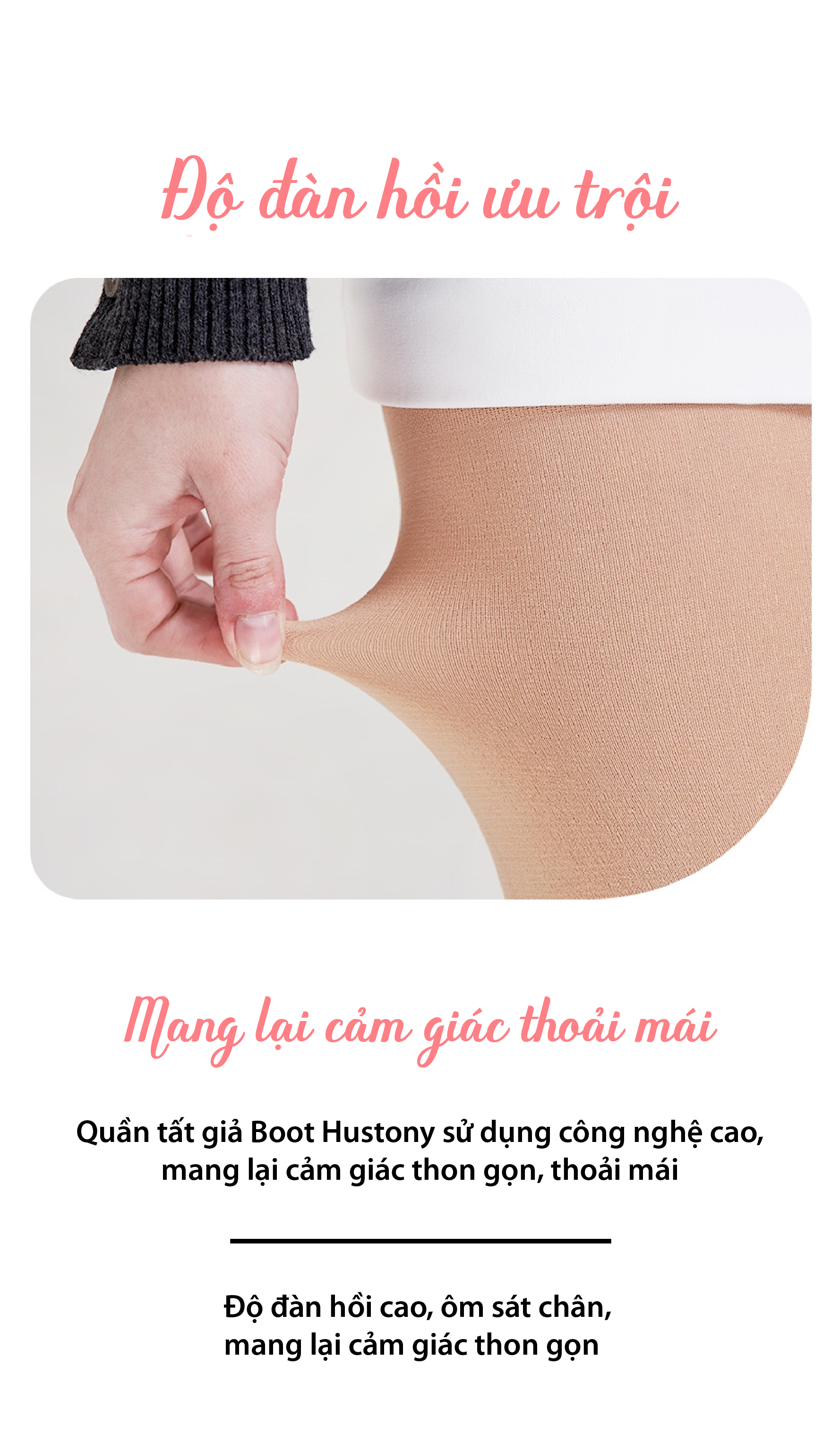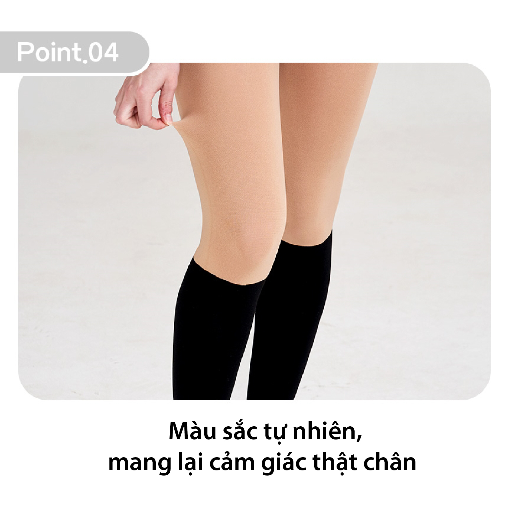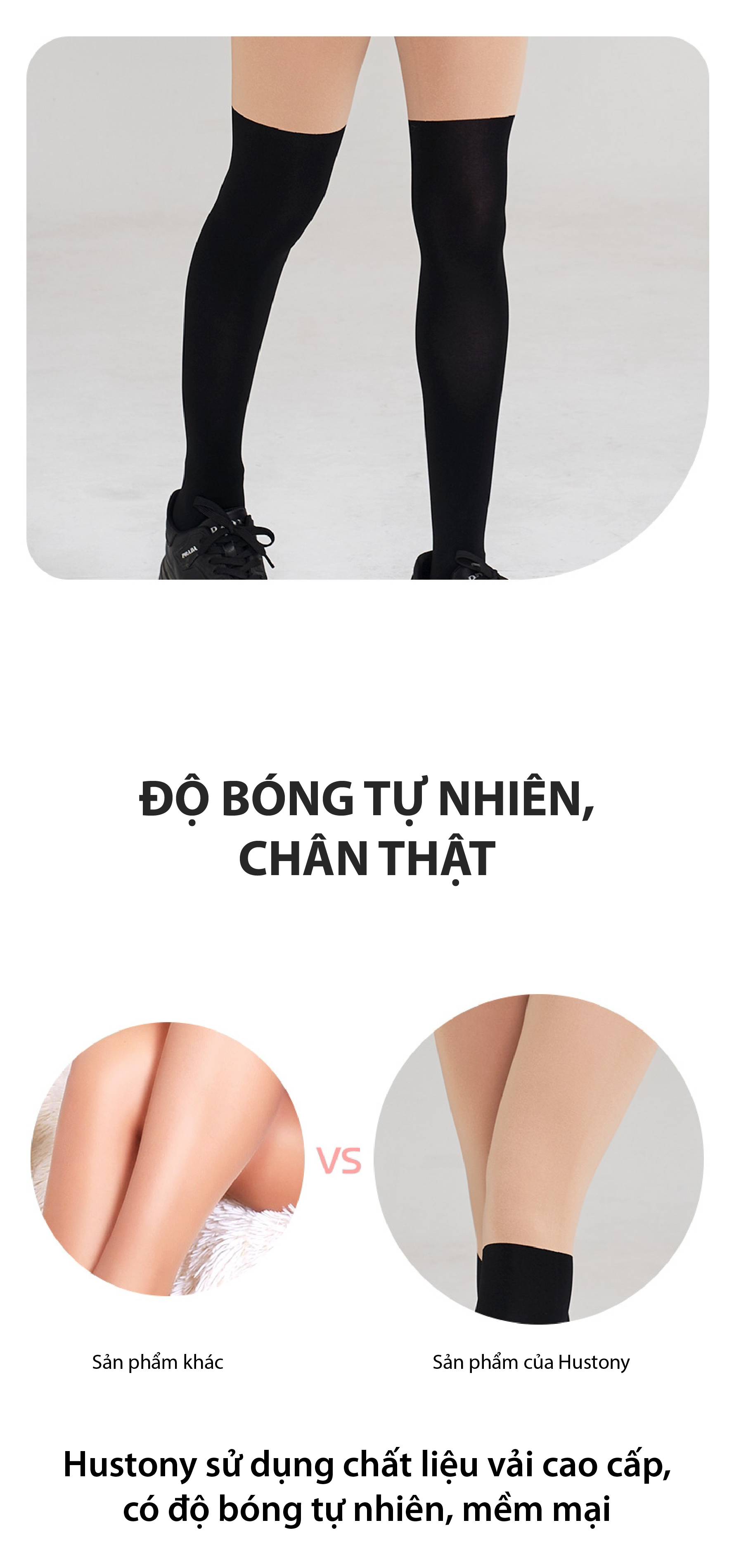 ✔ Thiết kế phần trên quần tất màu da, phần dưới màu đen mang lại cảm giác giống như đang đi boot cao cổ.